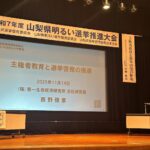 18歳選挙権が初めて適用された2016年参院選から2025年参院選に至るまでの国政選挙を振り返り、18歳・19歳の投票率の推移と課題、主権者教育の意義と先進的な実践例(小中高大と専門学校)、さらに投票率向上につながるアプローチなど、多角的にご紹介させていただきました。