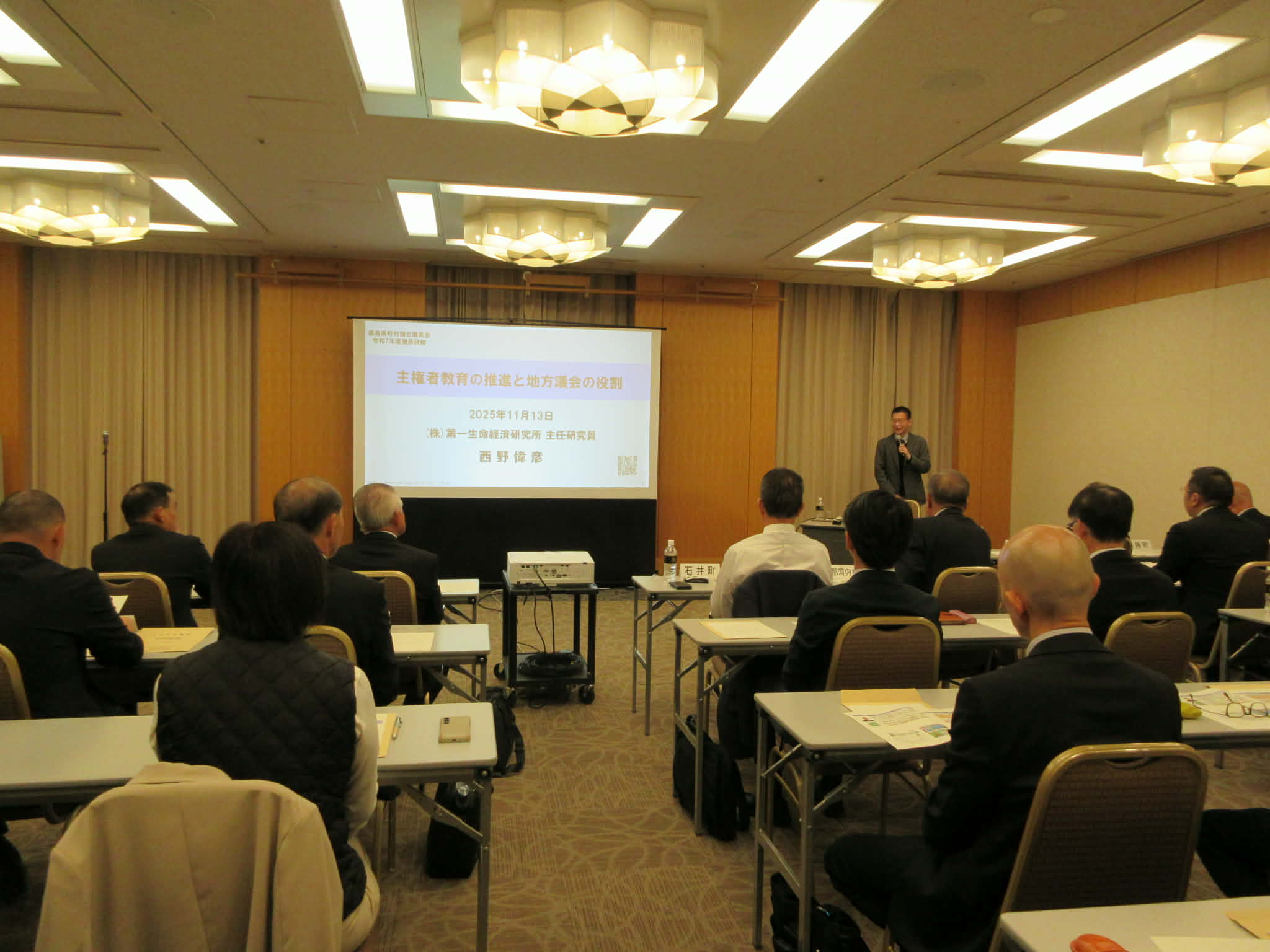 2025年11月13日、徳島県町村議会議長会の「議長研修」に講師として登壇しました。